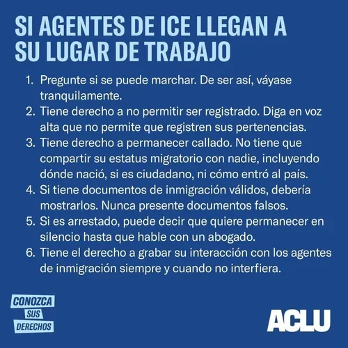 Si gentes de ICE/La Migra llegan a su lugar de trabajo (de la ACLU):